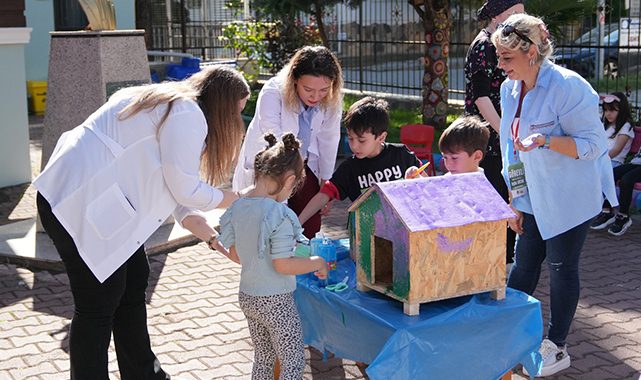 HEM EĞLENDİLER HEM ÖĞRENDİLERÖğrencilerin sorularını da yanıtlayan ekip, ardından öğrencilerin hayvanlarla aktif olarak ilgilenebilmesi için okullara iki adet kedi kulübesi ile kuş evi hediye etti. Bilgilendirmenin ardından gerçekleştirilen boyama etkinliğinde, renkli görüntüler oluştu. Ellerini çeşitli renklere boyayan hayvansever minikler, ardından kedi kulübeleri ve kuş evlerini el izleri ile renklendirdiler. Sokak hayvanlarına yönelik duyarlılığın artırılmasına yönelik düzenlenen etkinlik, eğitici olduğu kadar eğlenceli anlara sahne oldu.