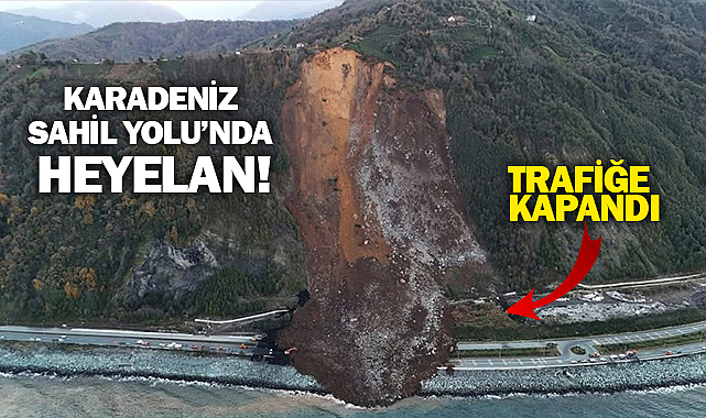 Heyelan nedeniyle yamaçtan kopan dev toprak ve kaya kütleleri Sahil Yolunun çift yönlü olarak ulaşıma kapattı.